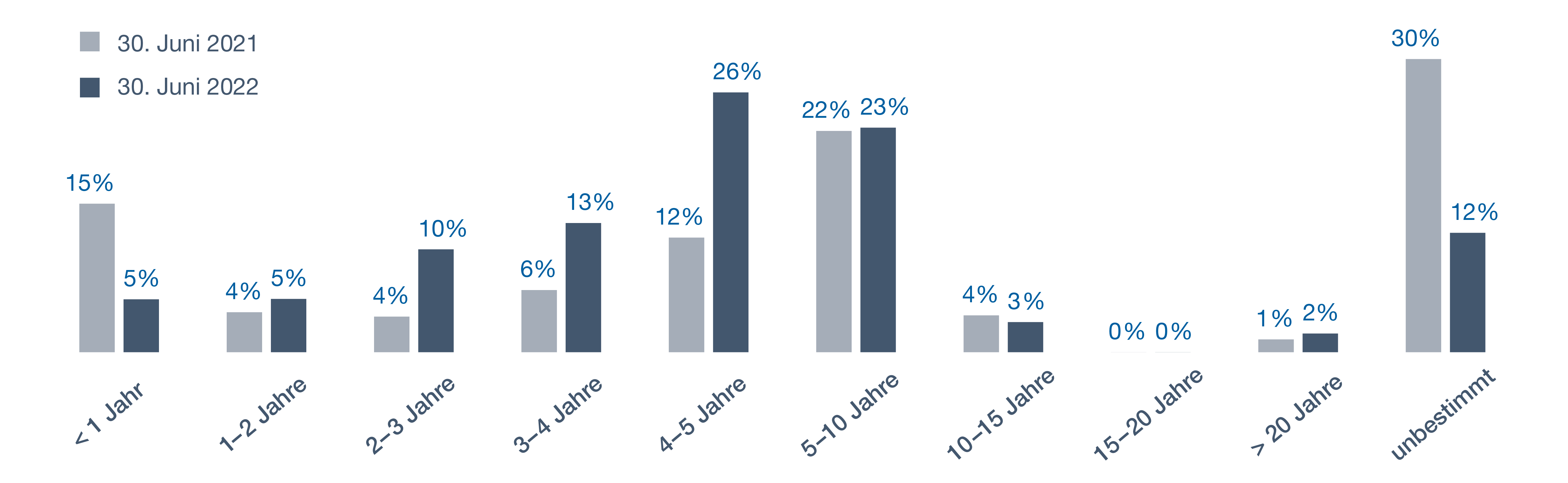 Die Leerstandsquote per Stichtag reduzierte sich im Vergleich zum Jahresende 2021 von 2.6% auf 2.4%.