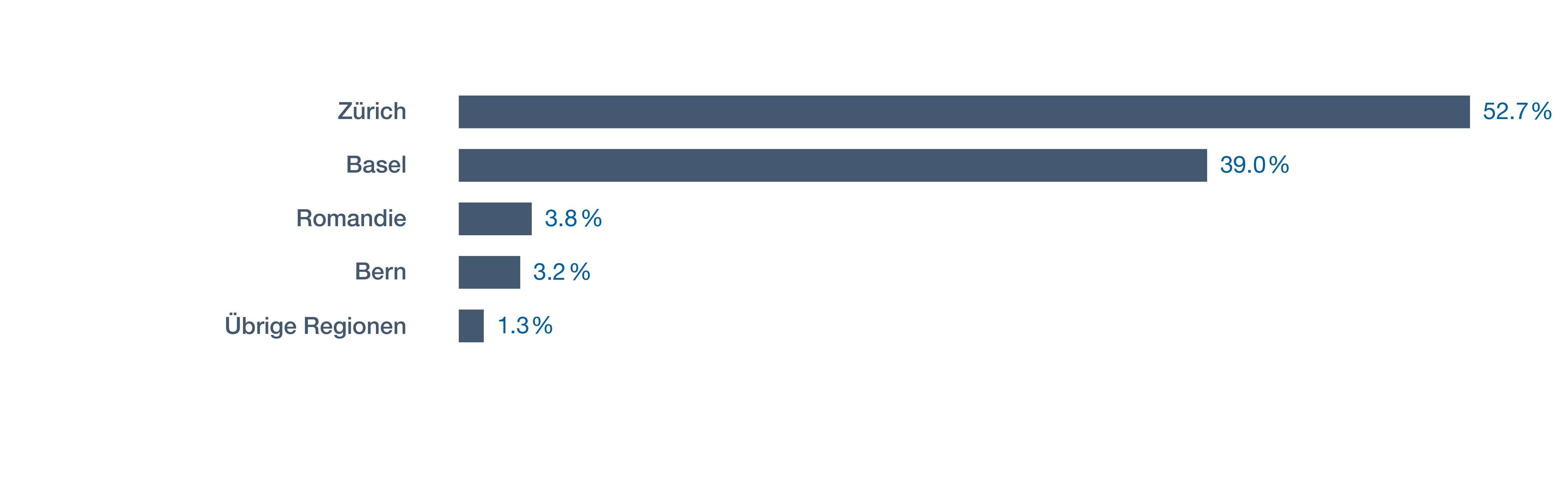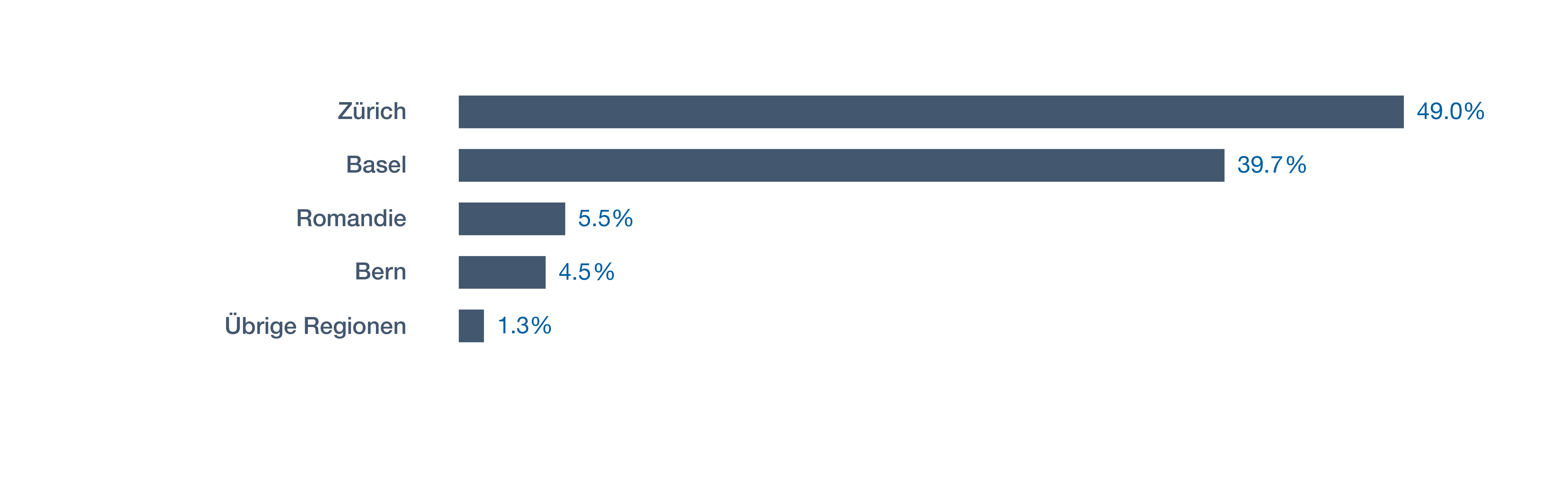 Massgeblich für den Leerstand per Stichtag sind die beiden Büroflächen am Picassoplatz 4 in Basel, welche ab Oktober vermietet sind. Darüber hinaus sind die Büroflächen am Zeltweg 67 in Zürich und Gerbergasse 48 in Basel weitere nennenswerte Leerstände. Der übrige Leerstand des Portfolios setzt sich aus Wohnungen um den Badischen Bahnhof Basel und aus Nebenobjekten wie Lagerräumen und Parkplätzen zusammen.